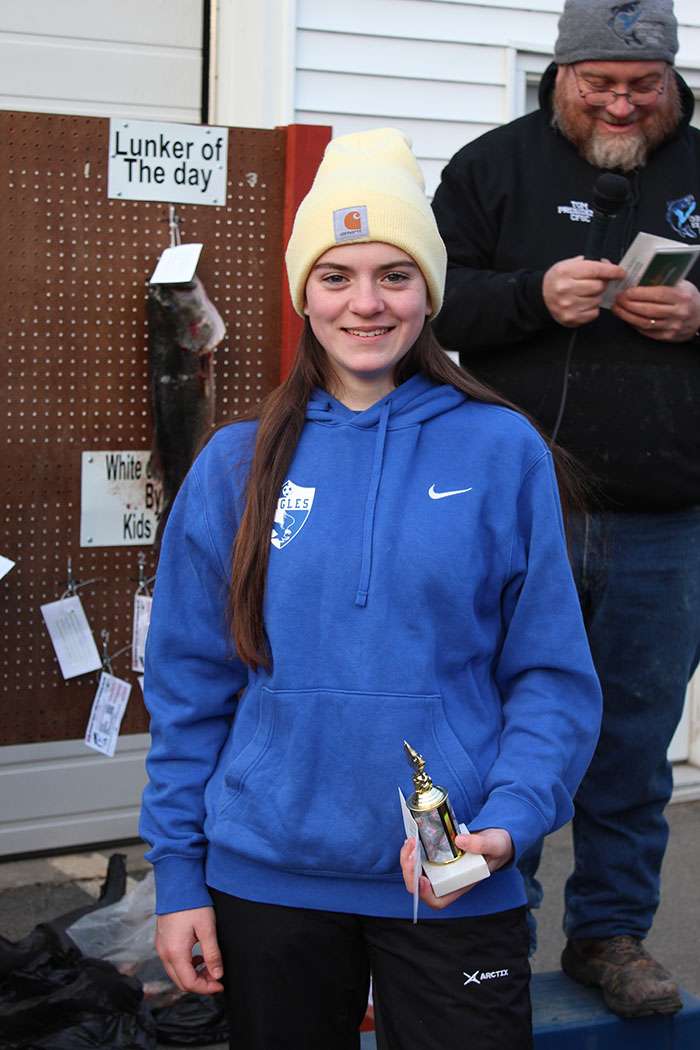 Rumpf continued. “We also had the children’s fishing division catch our greatest number of perch to date with over 140 brought to the fire house for counting.” The first-place award went to Blake Owens with 56 total perch. Perch, which have inundated hundreds of water systems where they don’t belong, tend to proliferate, stunt, and overwhelm ecosystems. Each year the derby committee checks in with the local biologists to make sure they are still able to hold the children’s category as described, with awards going to the most perch caught by count.