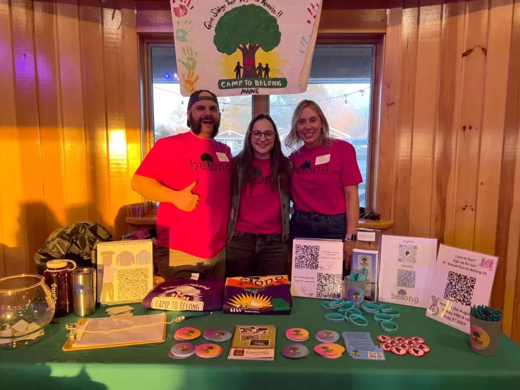 From left, Doug Andrews, Renee Murray and Adrian Phair share the mission of local nonprofit Camp to Belong after receiving last year’s $10,000 gift from Waterville Area Women’s Club’s “100 Women Who Give” award. (contributed photo)