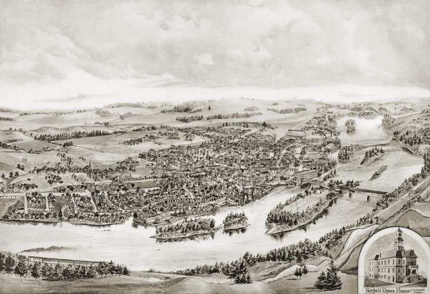 When Fairfield? is a question one writer in the bicentennial history raises. Most of its authors referred to the 1788 town as Fairfield, and called only the present downtown section Kendall’s Mills, named for an entrepreneur who arrived in 1780.