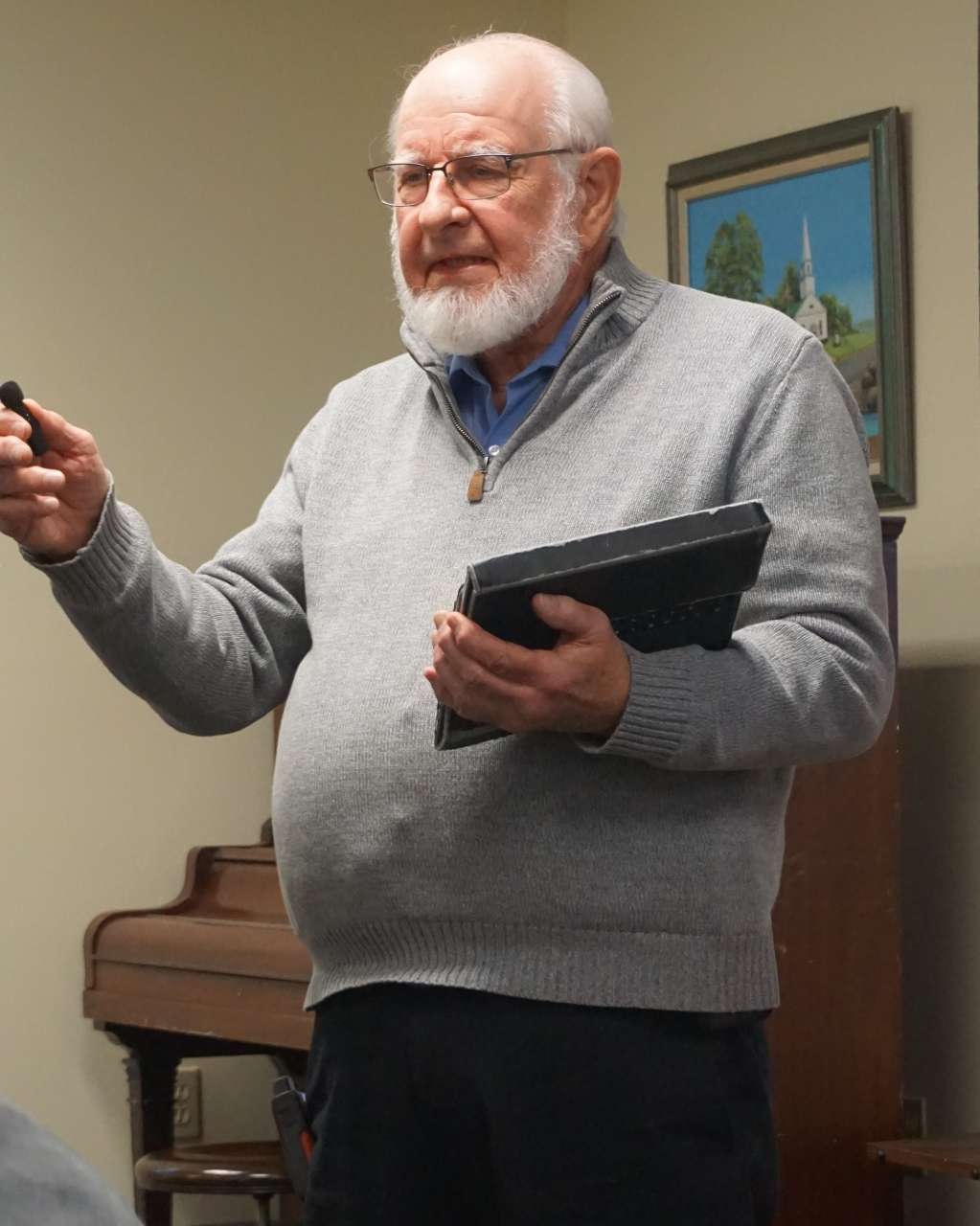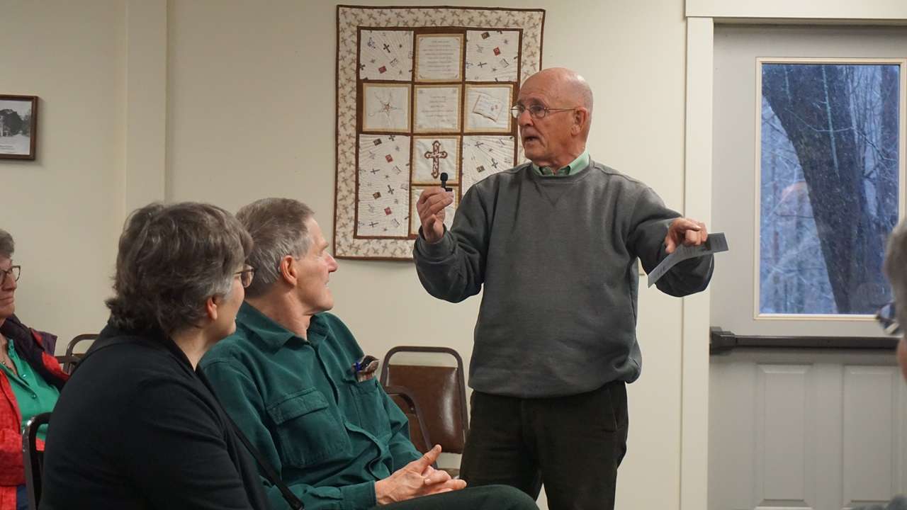 Following this, Harold Charles read from a diary entry or letter from the 1940s or ’50s, which included amusing advice on predicting the severity of the coming winter based on observations of corn husks, onion skins, and the behavior of squirrels.