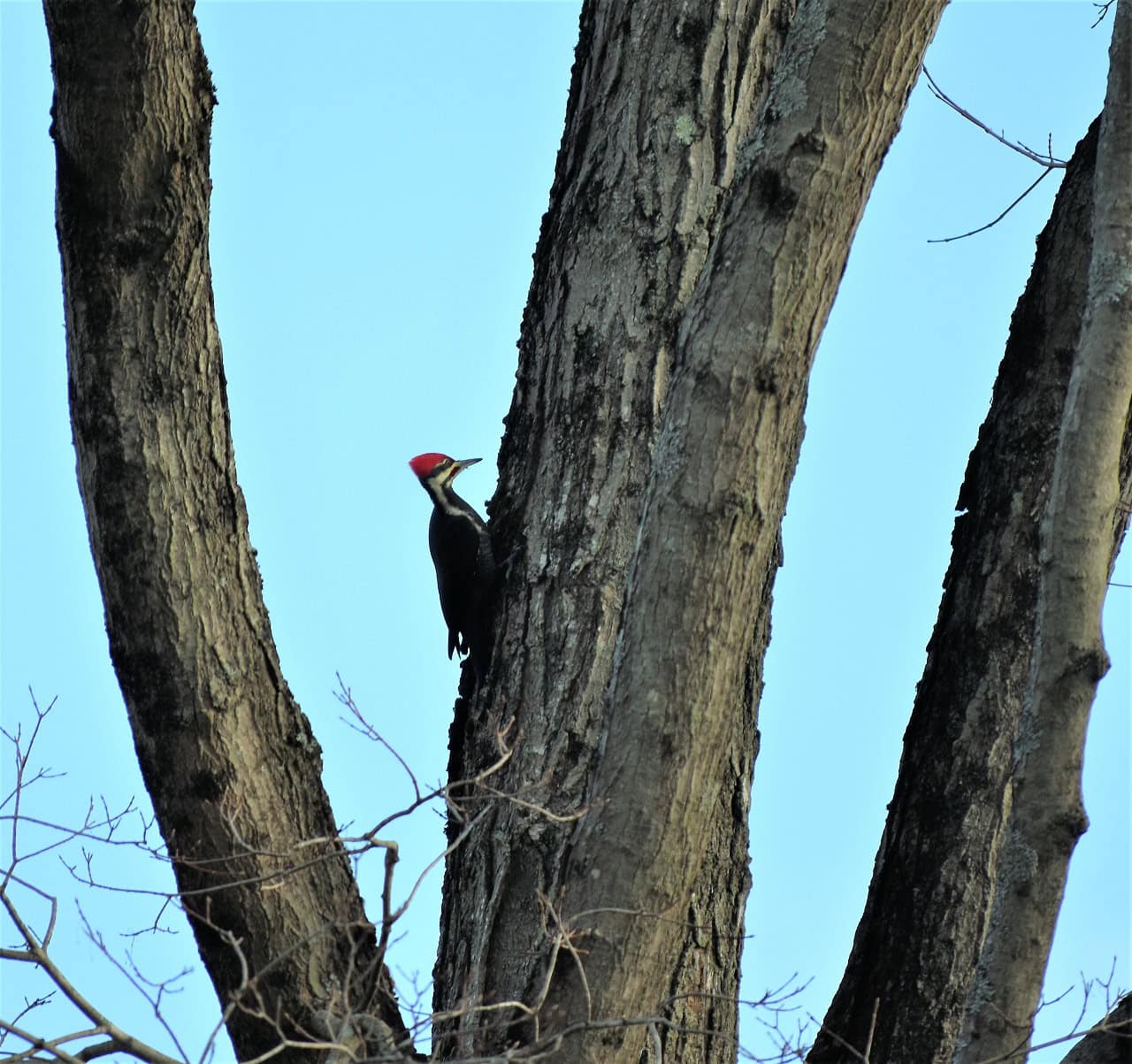 LOOKING FOR SNACK: Joan Chaffee, of Clinton, snapped this pileated woodpecker as he drills into a tree looking for something to eat.