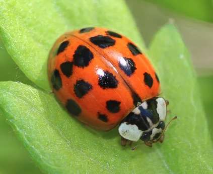 The common color is orange or red in coloration with 0 – 22 black spots of variable size. As a voracious predator, it was identified as a biocontrol agent for aphids and scale insects. Consequently, it has been introduced into greenhouses, crop fields, and gardens in many countries, including the United States and parts of Europe. The species is now established in North America (United States, Canada, Mexico), Central America South America, Europe, New Zealand, and South Africa.