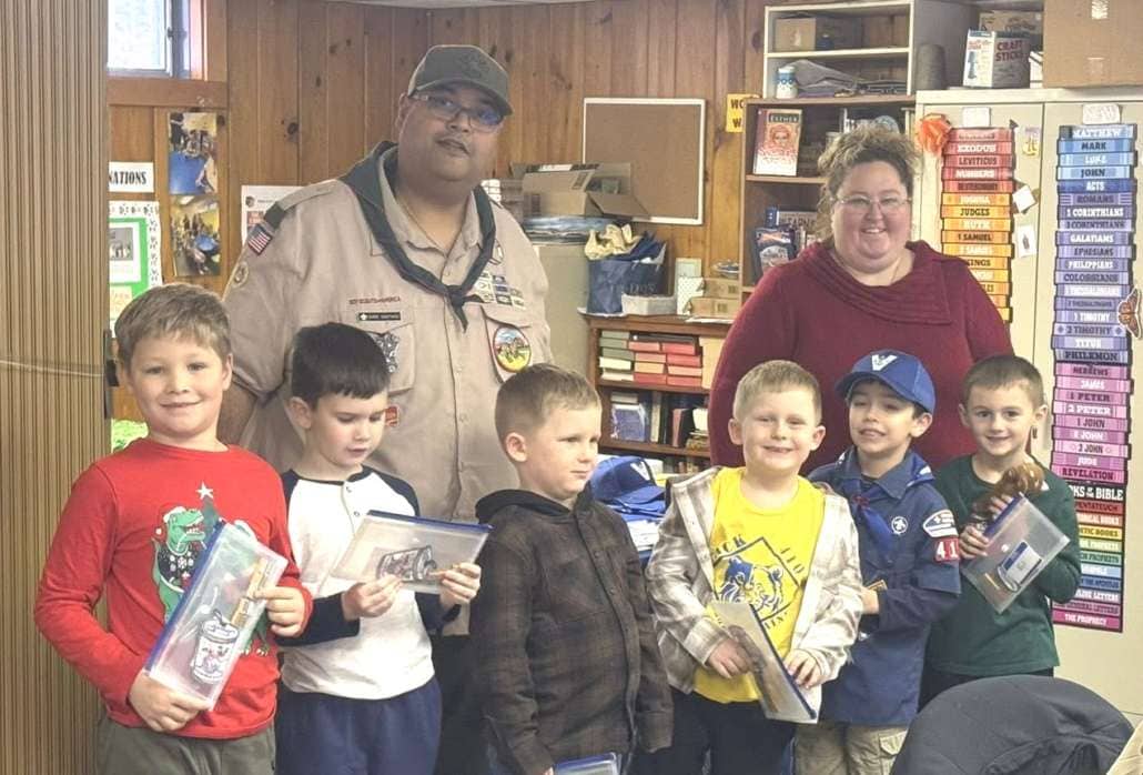 On March 14, 25 adult leaders and their families attended the 2026 Kennebec Valley District Scouting America District Awards Banquet. This year the banquet was hosted at Winslow Parks and Recreation, on Benton Avenue, in Winslow, home to Troop #433 Winslow. The banquet was catered by Rita’s Catering for the fourth year in a row. The Maine Mobile Scouting Museum was on display during the event, showcasing patches, uniforms, and other memorabilia going back as far as the beginning of Scouting in 1911.
